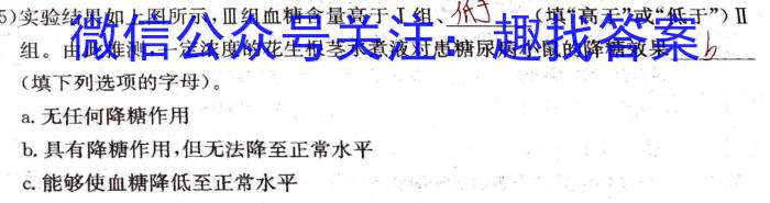 (5)实验结果如上图所示,Ⅲ组血糖含量高于I组、低于(填“高于”或“低于”)Ⅱ组。由此推测,一定浓度的花生根茎水煮液对患糖尿病小鼠的降糖效果(填下列选项的字母)。a.无任何降糖作用b.具有降糖作用,但无法降至正常水平C.能够使血糖降低至正常水平