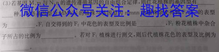 (3)若基因M、m与N、n的遗传遵循基因的自由组合定律,则红花植株的基因型有种。现将基因型为MMNN的植株与基因型为mmnn的植株杂交得到F1,F1的表型为,F1自交得到的F2中花色的表型及比例是,F2粉花植株中杂合子所占的比例为。若对F1植株进行测交,则后代植株花色的表型及比例为。