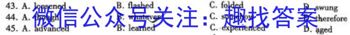 43.A.loosened B.flashed C.folded D.swung44.A.though B.what eve C.somehow D.thereforere45.A.advancedB.leam nedC.experienced