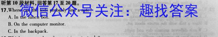 听第10段材料,回答第17至20题。17.Where can the kids probably find a note?A.In the lunch box.B.On the computer monitor.C.In the backpack.h mod s it n