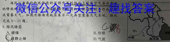 海风从海面向陆地推进的过程中遇到陆地上较热空气层而形成的锋面称之为a海风锋”。当海风锋与较弱的冷锋相遇时易形成强对流雷暴天气。如图为渤海湾地区某日一次典型雷暴天气系统。据此完成8~10题。40.^]N丙8.海风锋是CA.暖锋B.冷锋C.静止锋D.气旋冷锋海风锋