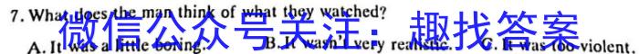 7.What does the man think of what they watched?A.It was a little boring.B.It was n’t very realistic.C.It was too violent.