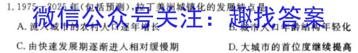 1.19752025年(包括预测),拉丁美洲城镇化的发展特点是A.流人城市的农村人口逐年增长B.城市人口年龄结构年轻化C.由快速发展期逐渐进人相对缓慢期D.大城市的首位度继续提高