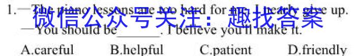 1.—The piano lessons are too hard for me. In early give up.-You should be . I believe you’ll make it.____A.careful B.helpful C.patient D.friendly