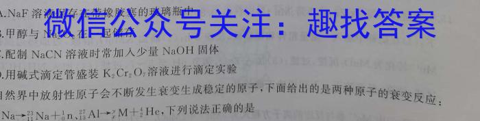 3.下列关于试剂的使用或保存方法中,正确的是A.NaF溶液保存在带橡胶塞的玻璃瓶中A.NaFNa2O2B.甲醇与NaO在一起储存NaOHC.配制NaCN溶液时常加入少量NaOH固体NaCND.用碱式滴定管盛装KCrO溶液进行滴定实验K2Cr2O74.自然界中放射性原子会不断发生衰变生成稳定的原子,下面给出的是两种原子的衰变反应: