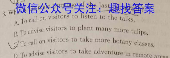 3. What is the main purpose of the last paragraph?A. To call on visitors to listen to the talks.B. To advise visitors to plant many more tulips.To call on visitors to take more botany classes.D. To advise visitors to take adventure in remote areas.
