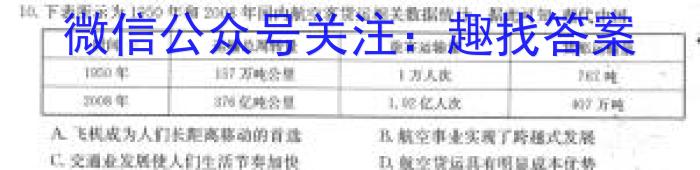 10.下表所示为年和2008年国内航空客您运相关数据计,据可知,表代中国A.飞机成为人们长离整动的首选B.航空事业实现了跨越式发展C.交酒业发展使人们生活节奏加快D.航空货运具有明成本优势