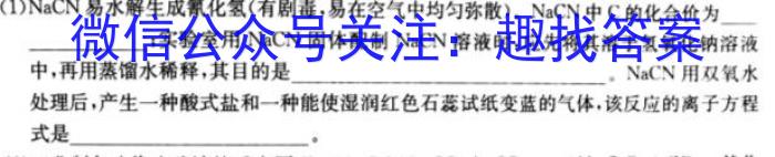 (1)NaCN易水解生成氰化氢(有剧毒,易在空气中均匀弥散)。NaCN中C的化合价为;实验室用NaCN固体配制NaCN溶液时,应先将其溶于氢氧化钠溶液中,再用蒸馏水稀释,其目的是.NaCN用双氧水处理后,产生一种酸式盐和一种能使湿润红色石蕊试纸变蓝的气体,该反应的离子方程式是.