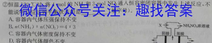 ②恒温120^C时,将4mol的NH3和3molNO2通入恒容密闭容器中发生上述反应,不能说明反应达到平衡状态的是(填字母)。A.容器内气体压强保持不变B.n(NH3):n(NO2)=4:3C.容器内气体密度保持不变D.容器内气体颜色不变xNNH4NO3O,浓溶液阴极及