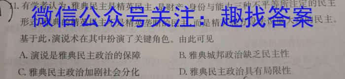 11..有学者认为:雅典民主是精英民主,是财产、身份与能力三种不平等所注定的民主形式,雅典的精英民主不是精英垄断的民主,而是精英想方设法说服大众的民主。基于此,演说术在其中扮演了关键角色。由此可见A.演说是雅典民主政治的保障B.雅典城邦政治缺乏民主性C.雅典民主政治加剧社会分化D.雅典民主政治具有局限性