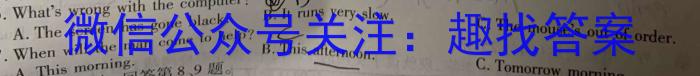 听第6段材料,回答第6、7题。B6.What’s wrong with the computer?B.It runs veryslow.A. The screen has gone black.Ce7.When will the man come to help?B. This afterafternoon.C. The mouse’s out of order.C. Tomorrow morning