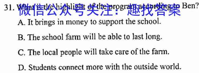 31.What is the highlight of the program according to Ben?A.It brings in money to support the school.B.The school farm will be able to last long.C.The local people will take care of the farm.D.Students connect more with the outside world.