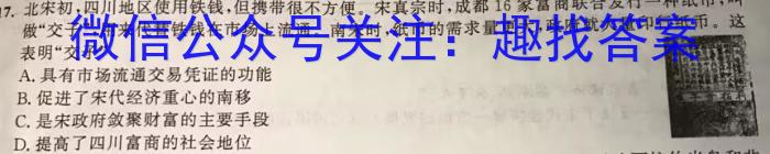 17.北宋初,四川地区使用铁钱,但携带很不方便。宋真宗时,成都16家富商联合发行一种纸币,叫做“交子”,用来代替铁钱在市场上流通。南宋时,纸币的需求量更大,政府就大量印行纸币。这表明“交子”A.具有市场流通交易凭证的功能B.促进了宋代经济重心的南移C.是宋政府敛聚财富的主要手段D.提高了四川富商的社会地位