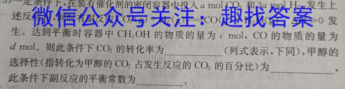 (3)一定条件下,在装有催化剂的密闭容器中投入amolCO2和3amolH2,发生上述反应Ⅳ,同时有副反应CO2(g)+H2(g)CO(g)+H2O(g)H>0发生。达到平衡时容器中CH3OH的物质的量为cmml,CO的物质的量为dmol。,则此条件下CO2的转化率为(列式表示,下同),甲醇的选择性(指转化为甲醇的CO2占发生反应的CO2的百分比)为,此条件下副反应的平衡常数为。