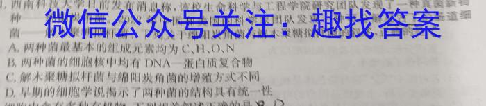 1.西南科技大学目前发布消息称,该校生命科学与工程学院研究团队发现了一种真菌新物种编阳炭角菌。2022年中国和美国的科学家团队发现一种可分解尼古丁的肠道细菌解木聚糖拟杆菌。下列关于绵阳炭角菌与解木聚糖拟杆菌的叙述,正确的是CA.两种菌最基本的组成元素均为C、H、O、NB.两种菌的细胞核中均有DNA一蛋白质复合物C.解木聚糖拟杆菌与绵阳炭角菌的增殖方式不同D.早期的细胞学说揭示了两种菌的结构具有统一性