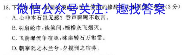 国考1号18·第18套·高中2023届高考适应性考试语文试卷答案,我们目前收集并整理关于国考1号18·第18套·高中2023届高考适应性考试语文得系列试题及其答案,更多试题答案请关注微信公众号:趣找答案/直接访问www.qzda.com(趣找答案)