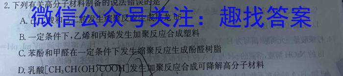 B.一定条件下,乙烯和丙烯发生加聚反应合成塑料C.苯酚和甲醛在一定条件下发生缩聚反应生成酚醛树脂D.乳酸[CH3CH(OH)COO]发生聚反应合成可降解高分子材料
