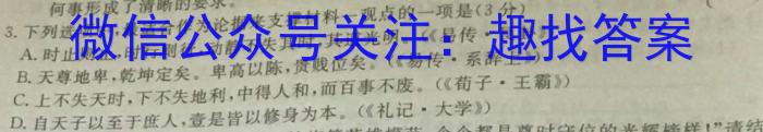 3.下列选项中,最适合作为论据来支撑材料一观点的一项是(3分)A.时止则止,时行则行,动静不失其时,其道光明。(《易传·艮卦》)B.天尊地卑,乾坤定矣。卑高以陈,贵贱位矣。(《易传·系辞上》)C.上不失天时,下不失地利,中得人和,而百事不废。(《荀子·王霸》)D.自天子以至于庶人,壹是皆以修身为本。(《礼记·大学》)
