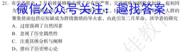 21.有学者提出,2月的彼得格勒出现了少有的严寒,交通瘫痪加剧粮食短缺。起初因为严寒,居民鲜少出门。2日,气温骤升到8^C,,民众走上大街享受阳光,人群的聚集使面包供应短缺成为群情激愤的导火索,由此引发二月革命。该学者的研究A.过度强调了自然因素B.忽视了历史偶然性C.注重具体分析与阐释D.滑向了历史唯心论