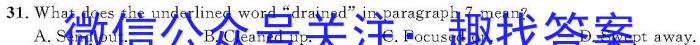 31.What does the underlined word“drained”in paragraph 7 mean?A.Send out. B.Cleaned up. C.Focused on. D.Swept away.