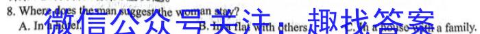 8.Where does the man suggest the woman stay?A.In a hotel. B.In a flat with others.C.In a house with a family