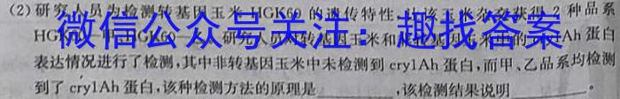 (2)研究人员为检测转基因玉米HGK60的遗传特性,让该玉米杂交获得2种品系HGK60一甲、HGK60乙。研究人员对转基因玉米和非转基因玉米中的cry1Ah蛋白表达情况进行了检测,其中非转基因玉米中未检测到cryAh蛋白,而甲、乙品系均检测cry1Ah到了cry1Ah蛋白,该种检测方法的原理是,该检测结果说明。