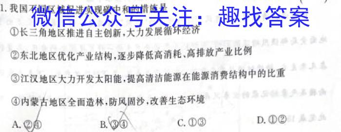 11.我国不同区域促进实现碳中和的措施是()①长三角地区推进自主创新,大力发展循环经济②东北地区优化产业结构,逐步降低高消耗、高排放产业比例③江汉地区大力开发太阳能,提高清洁能源在能源消费结构中的比重④内蒙古地区全面造林,防风固沙,改善生态环境A.②C.①③