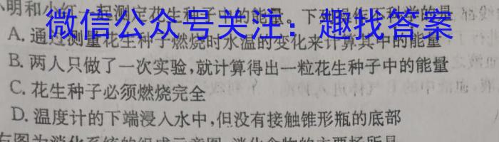 8.小明和小红一起测定花生种子中的能量。下列操作不的是A.通过测量花生种子燃烧时水温的变化来计算其中的能量B.两人只做了一次实验,就计算得出一粒花生种子中的能量C.花生种子必须燃烧完全D.温度计的下端浸入水中,但没有接触锥形瓶的底部