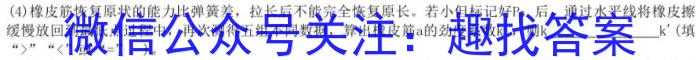 (4)橡皮筋恢复原状的能力比弹簧差,拉长后不能完全恢复原长。若小但标记好P5后,通过水平线将橡皮擦缓慢放回到最低点过程中,再次测得五组不同数据,算出橡皮筋a的劲度系数,则kk'(填“>”“<”或“=”)。