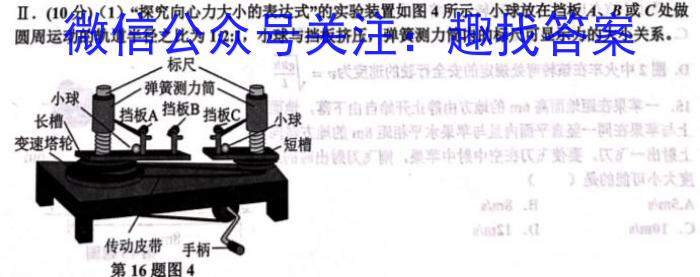 Ⅱ.(10分)(1)“探究向心力大小的表达式”的实验装置如图4所示。小球放在挡板A、B或C处做圆周运动的轨道半径之比为1:2:1,小球与挡板挤压,弹簧测力筒内的标尺可显示力的大小关系。