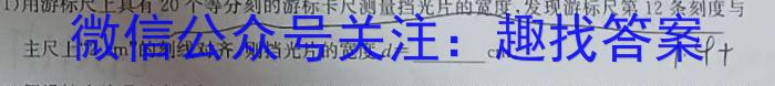 (1)用游标尺上具有20个等分刻的游标卡尺测量挡光片的宽度,发现游标尺第12条刻度与主尺上“22cm^n的刻线对齐,则挡光片的宽度d=cm。1.4+