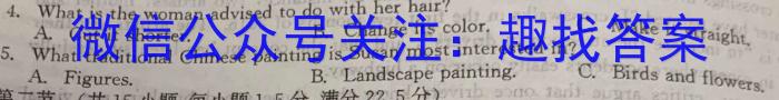 A.At 6:20.4.What is the woman advised to do with her hairB Change its color.A.Cut it shorter.C. Make it straight.5.What traditional Chinese paintin ting is Susan most interested in?A.Figures.B.Landscape painting.C. Birds and flowers.
