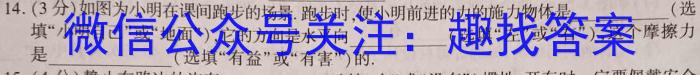 14.(3分)如图为小明在课间跑步的场景.跑步时,使小明前进的力的施力物体是(选填“小明自己”或“地面”),它的方向是水平向(选填“左”或“右”),这个摩擦力是(选填“有益”或“有害”)的.)静在