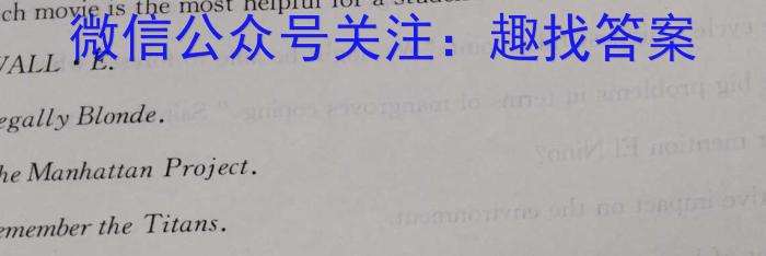 2. Which movie is the most helpful for a student with self-doubt?A.WALL⋅E.B.Legally Blonde..The Manhattan Project.D.Remember the Titans.