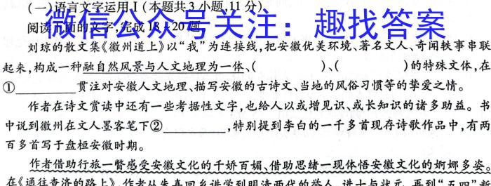 (一)语言文字运用I(本题共3小题,11分)阅读下面的文字,完成18∼20题。刘琼的散文集《徽州道上》以“我”为连接线,把安徽优美环境、著名文人、奇闻轶事串联起来,构成一种融自然风景与人文地理为一体、()、()的特殊文体,在①贯注对安徽人文地理、描写安徽的古诗文、当地的风俗*惯等的挚爱之情。作者在诗文赏读中还有一些考据性文字,也给人以或增见识、或长知识的诸多助益。书中说到徽州在文人墨客笔下②,特别提到李白的一千多首现存诗歌作品中,有两百多首写于盘桓安徽时期。
