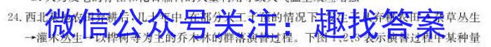 24.西北某地农田弃耕后,几十年中,在部分人工千预的情况下,发生了从弃耕农田→杂草丛生→灌木丛生→以桦树等为主的乔木林的群落演替过程。下图1、2.3表示演替过程中某种量随时间的变化曲线,下列有关分析错误的是A.弃耕农田上发生的群落演替类型是次生演替B.图1可表示演替过程中物种丰富度与时间的关系C.图2可表示该地块上抵抗力稳定性与时间的关系D.图3可表示草本植物种群数量随时间变化的情况