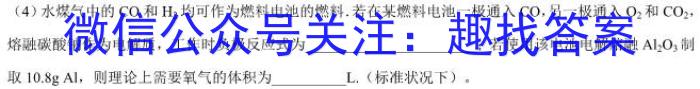 (4)水煤气中的C和H2均可作为燃料电池的燃料.若在某燃料电池一极通入CO,,另一极通入O2和CO2,熔融碳酸钠作为电解质,工作时负极反应式为;若使用该电解熔融Al2O3制取10.8gAl,,则理论上需要氧气的体积为L.(标准状况下)。