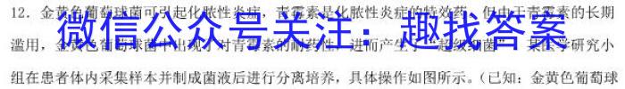 12.金黄色葡萄球菌可引起化脓性炎症,青霉素是化脓性炎症的特效药。但由于青霉素的长期滥用,金黄色葡萄球菌中出现了对青霉素的耐药性,进而产生了“超级细菌”。某医学研究小组在患者体内采集样本并制成菌液后进行分离培养,具体操作如图所示。(已知:金黄色葡萄球