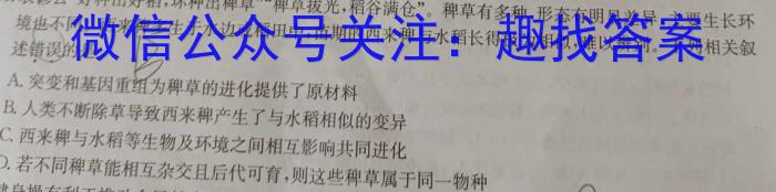 10.农谚云“好种出好稻,坏种出稗草”“稗草拔光,稻谷满仓”。稗草有多种,形态有明显差异,主要生长环境也不同。西来稗多生于水边或稻田中,苗期的西来稗与水稻长得极为相似,难以辨别下列相关叙述错误的是3A.突变和基因重组为稗草的进化提供了原材料B.人类不断除草导致西来稗产生了与水稻相似的变异C.西来稗与水稻等生物及环境之间相互影响共同进化D.若不同稗草能相互杂交且后代可育,则这些稗草属于同一物种
