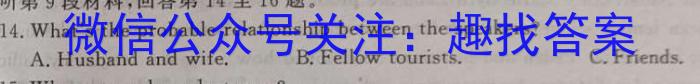听第9段材料,回答第14至16题。14. What’s the probable relationship between the speakers?A. Husband and wife.B. Fellow tourists. C.FFriends.