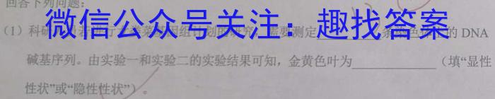 (1)科研人员若进行女娄菜基因组计划的研究,需要测定13条染色体上的DNA碱基序列。由实验一和实验二的实验结果可知,金黄色叶为(填“显性性状”或“隐性性状”)