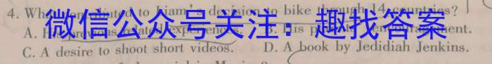 4.What contributed to Liam’s decision to bike through 14 countries?A. His previous related experieB. His parents’encouragement.C.A desire to shoot short videos. D.A book by Jedd iah Jenkins.Book