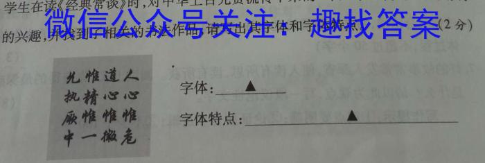 1.学生在读《经典常谈》时,对中华上古先贤流传下来的“十六字心传”产生了浓厚的兴趣,并找到了相关的书法作品,请写出其字体和字体特点。(2分)字体:▲字体特点:▲