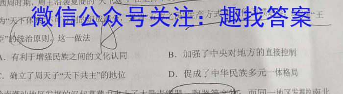 1.西周时期,周王沿袭夏商的“天下观”,在坚持华夏中心主义的前提下,视高度独立的四夷”不可分割的组成部分,强调“五方之民”生产方式和风俗*惯迥异,却同属“王8A.有利于增强民族之间的文化认同B.加强了中央对地方的直接控制C.确立了周天子“天下共主”的地位D.促成了中华民族多元一体格局