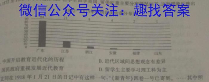 1187至1875年中国选120名学生留学美国,留美幼童主要分布情况如下,这种现象反映出1872-1875年中国留美幼童分布842184厂东江苏浙江福建山东A.中国开启教育近代化的历程B.近代区域间思想观念有差异C国民政府重视发展近代教育D.留学生主要学*理工科为主