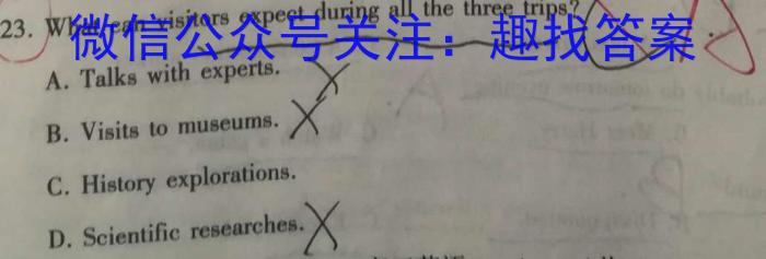 23.What can visitors expect during all the three tripss?A. Talks with experts.B. Visits to museums.C. History explorationsD. Scientific research e