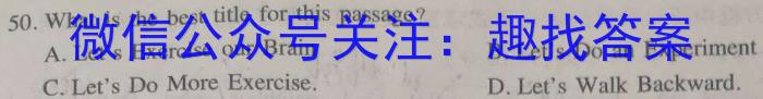 50. What is the best title for this passage?A. Let’s Exercise our Brain B.Let’s Do an ExperimentC. Let’s Do More Exercise. D.Let’s Walk Backward.