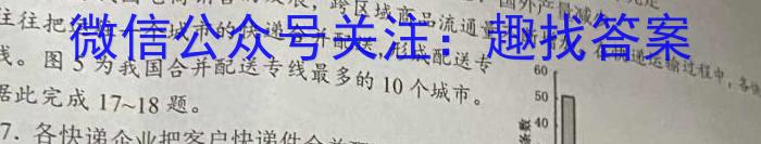 往往把运往一个城市的快递合并配送,形成配送专D.国外产量减少随着我国电商销售的发展,跨区域商品流通量不断增加。在快递运输粗中,线。图5为我国合并配送专线最多的10个城市。据此完成17~18题。