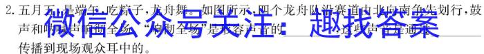 2.五月五,是端午,吃粽子,龙舟舞。如图所示,四个龙舟队沿赛道由北向南争先划行,鼓声和呐喊声响彻全场。“响彻全场”是形容声音的,这些声音是通过传播到现场观众耳中的。