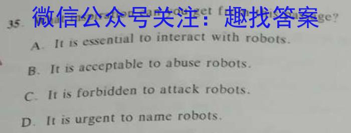 35. What inspiration can you get from this passage?A. It is essential to inter a et with robots.B. It is a ceep table to abuse robots.C. It is forbidden to attack robots.D.It is urgent to name robots.2023届高三高考模拟测试英语试卷(二) 第8页(共10页)